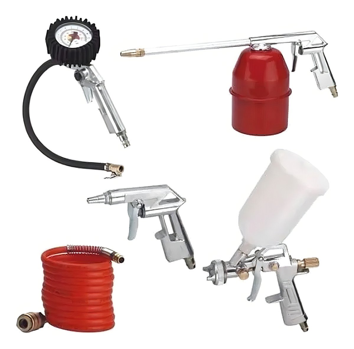 Este Kit de Compresor de Aire para Pintar de 5 Piezas es ideal para aquellos que buscan realizar trabajos de pintura, inflado y limpieza con herramientas de alta calidad. Incluye una pistola de pintura, manguera, inflador y otros accesorios, proporcionando un conjunto completo y versátil para múltiples aplicaciones. Este set es compatible con la mayoría de los compresores de aire, siendo una opción ideal tanto para aficionados como para profesionales que buscan resultados precisos y acabados perfectos.