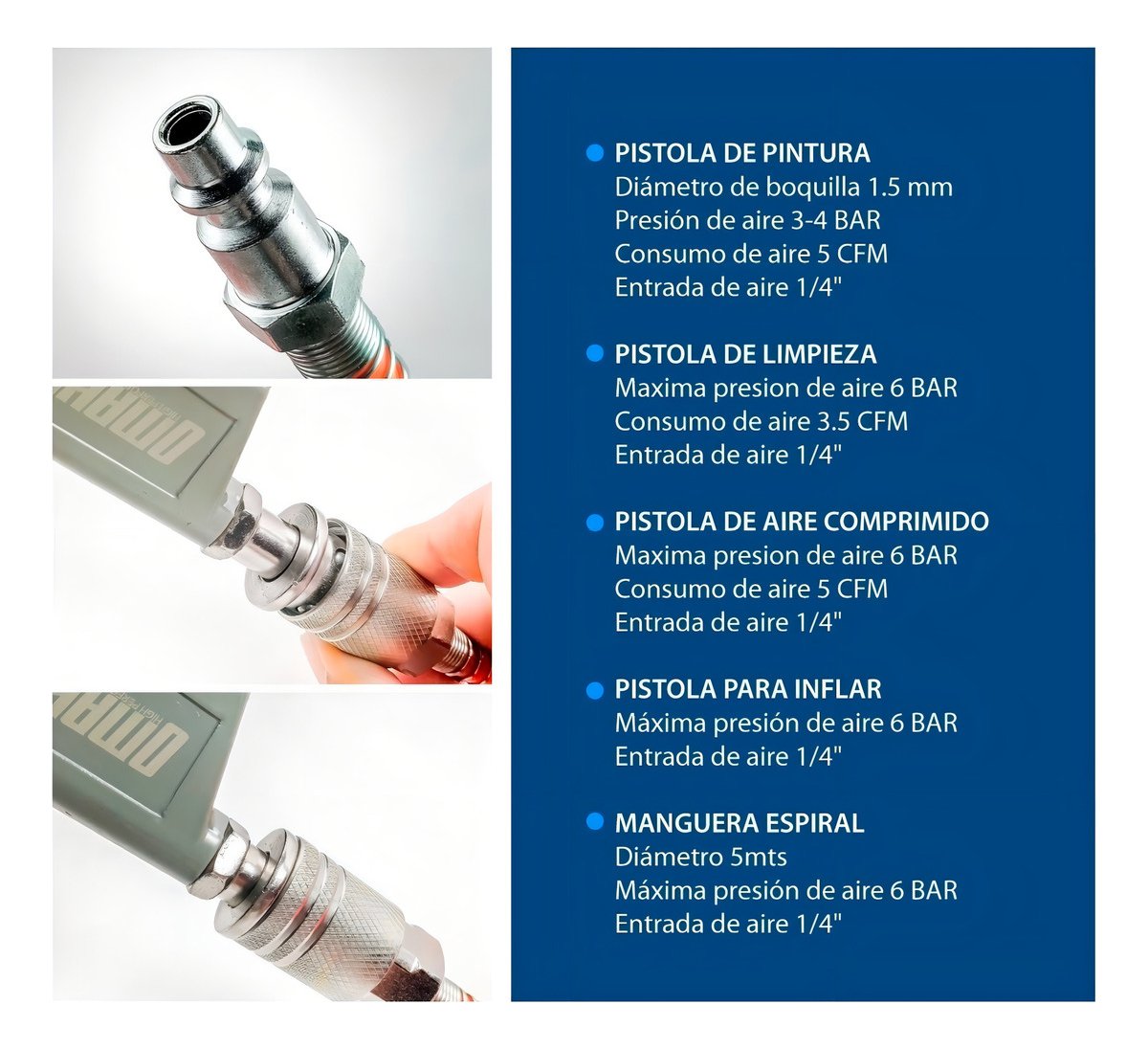 Alta Compatibilidad: Compatible con la mayoría de los compresores de aire del mercado.